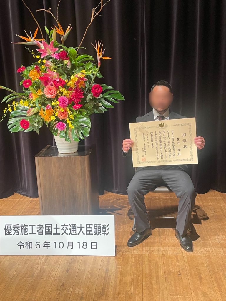 建設ジュニアマイスターに表彰されました。 2025年4月1日 yasuda 2024年度の「建設ジュニアマイスター」に当社の藤井職長が選出されました。「建設マイスター」とは1992年に創設された優秀施工者国土交通大臣顕彰者の通称です。建設マスター制度は、建設現場において工事施工に直接従事し、優秀な技能・技術を有する建設技能者を「優秀施工者」として国土交通大臣が顕彰する制度のことです。藤井職長は年齢39歳以下の部門で「建設ジュニアマイスター」を表彰されました。